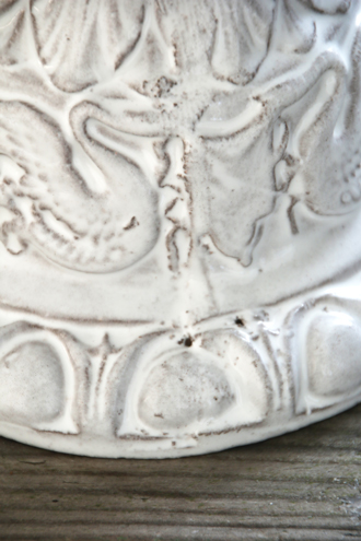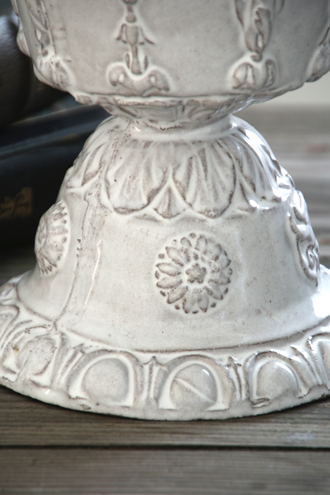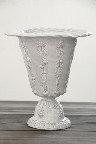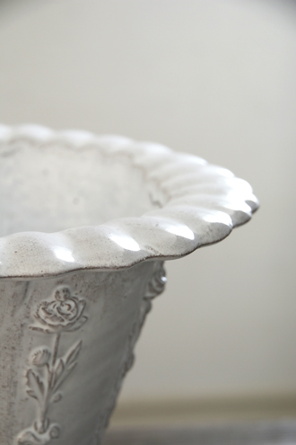 ローズ装飾が華やかな大きめのフラワーベース。脚付きなのでよりエレガントにアレンジしていただけます。