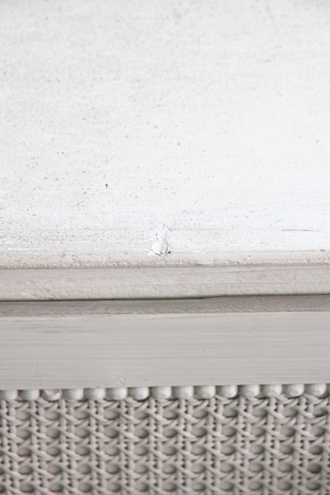 天板はアンティークホワイトの塗装になっています。下地の色がのぞくくらいの、アンティーク調の仕上げになっています。