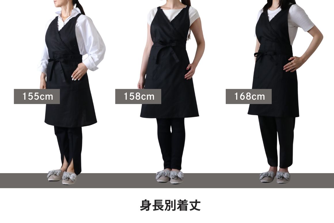 身長別の着丈はこちらになります。身長155cm、158cm、168cm。