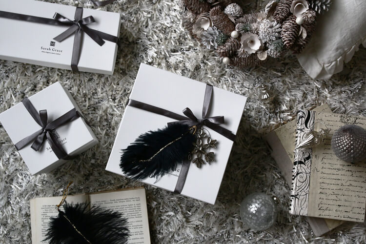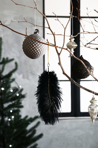 天然の羽根で作られたオーナメント。上品でシックな印象になります。