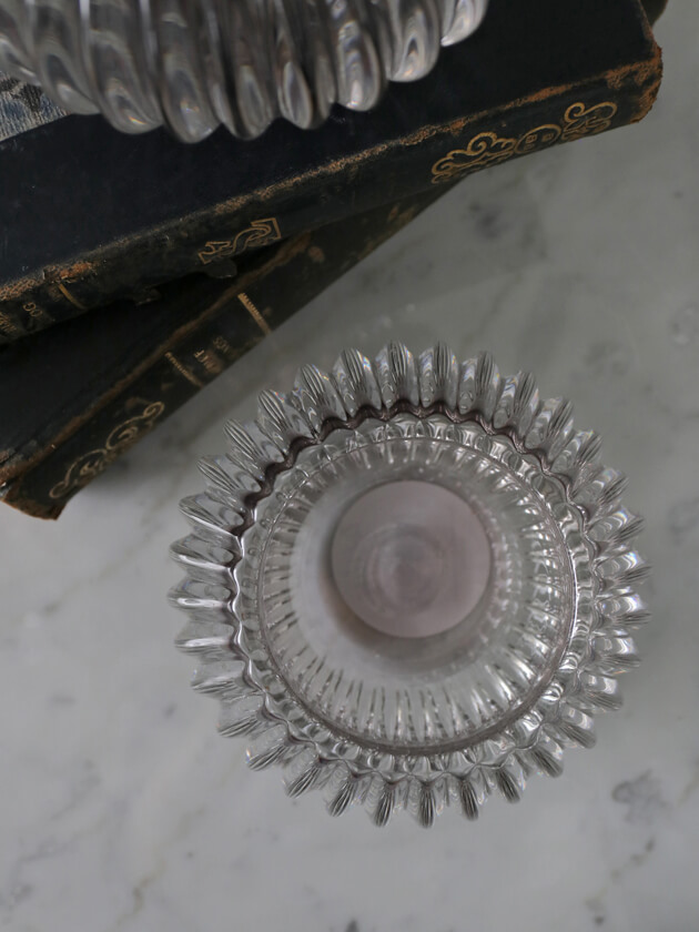 中に写真のような市販のティーライトキャンドルを入れてお使いください。ガラスには写真のような 気泡や小さな黒点のようなものがある場合がございます。あらかじめご了承いただけます様お願いいたします。