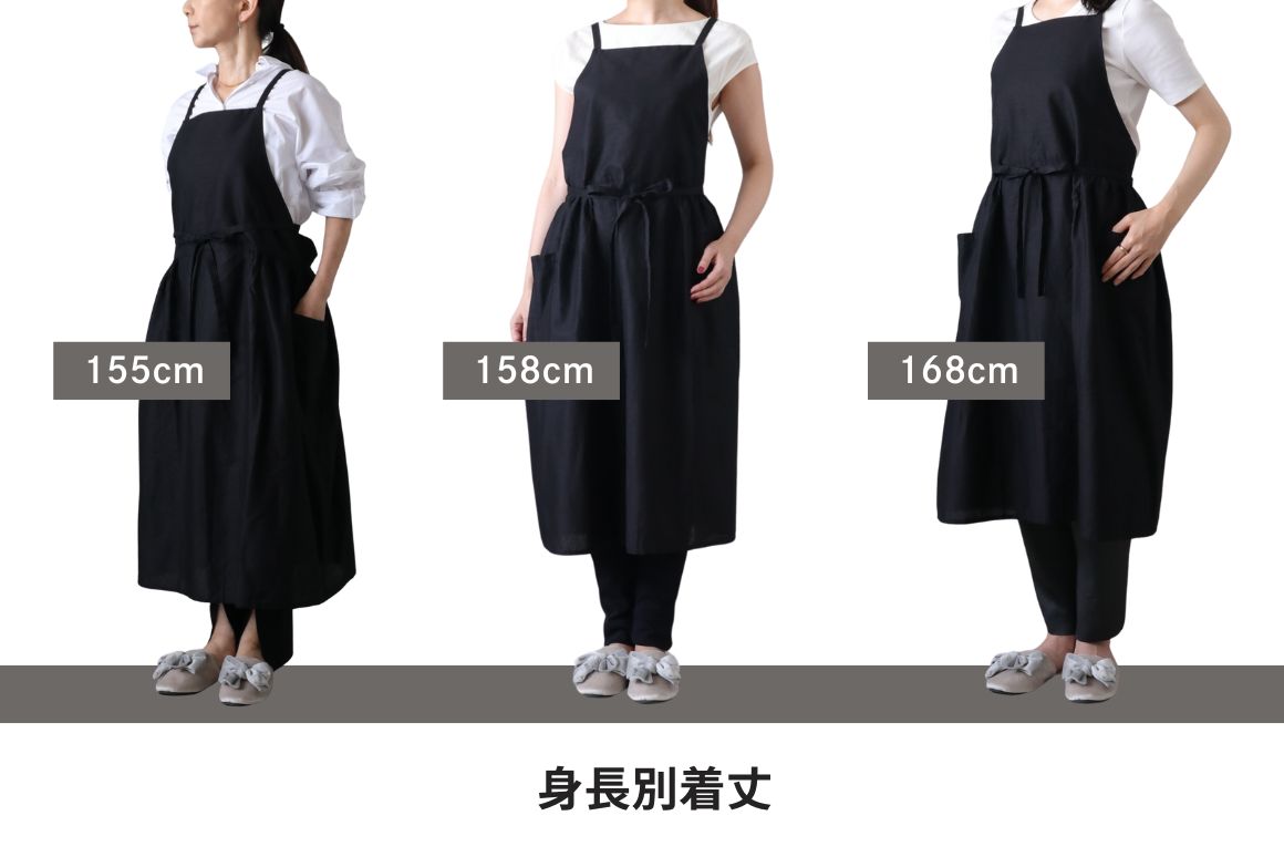 身長別の着丈はこちらになります。身長155cm、158cm、168cm。